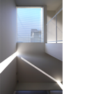 真っ白なハコの水平に空いたスリットから美容室へ、